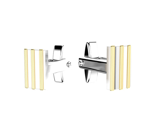 HIT NEW STYLE CUFFLINKS Rectangle in Sterling Silver and Yellow Gold